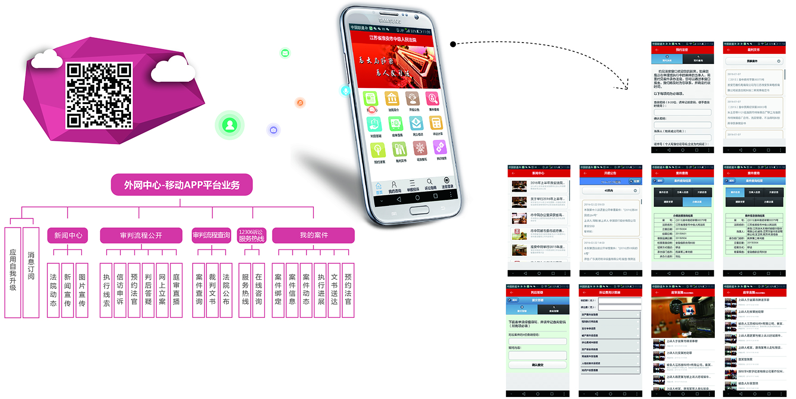 移動(dòng)互聯(lián)網(wǎng)行業(yè)的快速發(fā)展,通過手機(jī)移動(dòng)客戶端,法院可以通過全方位的展示法院動(dòng)態(tài)、法院文化、案件進(jìn)展、審判服務(wù)等信息;基于APP移動(dòng)、隨身的特點(diǎn),可以使對(duì)外宣傳和服務(wù)更加靈活高效,進(jìn)而樹立法院良好的社會(huì)形象。